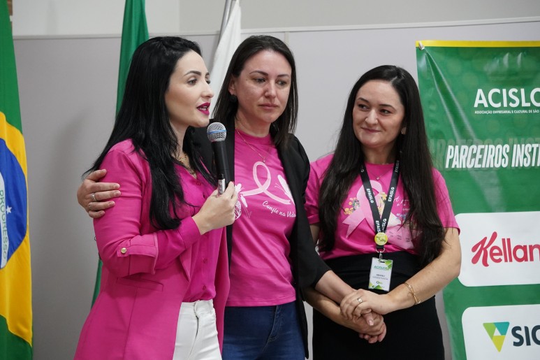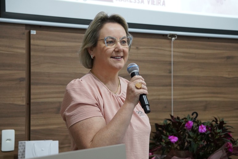 A Cooperativa Agropecuária São Lourenço (Caslo) e a Associação Empresarial e Cultural de São Lourenço do Oeste (Acislo) promoveram, na manhã desta terça-feira (14), a palestra “Criadas para Transformar”, ministrada pela consultora cooperativista Maressa Vieira. O evento integrou a programação alusiva ao Outubro Rosa, mês dedicado à conscientização e à prevenção do câncer de mama, e reuniu mulheres cooperativistas, empreendedoras e lideranças comunitárias de São Lourenço do Oeste.