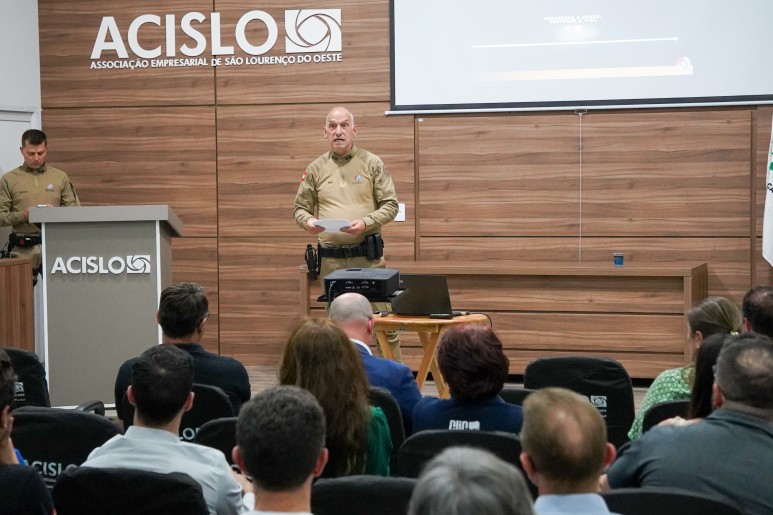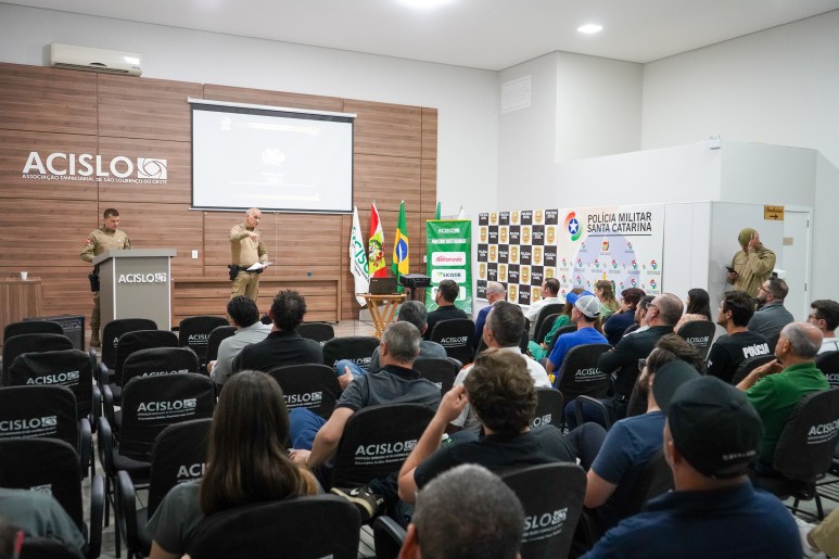 A Polícia Militar (PM) e a Associação Empresarial e Cultural de São Lourenço do Oeste (Acislo) lançaram, na noite desta segunda-feira (27), o Programa Rede de Vizinhos Comercial, iniciativa voltada a fortalecer a segurança no comércio local e aproximar a PM dos empresários. O encontro reuniu representantes da Acislo, Conselho Comunitário de Segurança (Conseg), Polícia Civil (PC), Corpo de Bombeiros, Executivo e Legislativo Municipal, Rotary e Câmara de Dirigentes Lojistas (CDL).
