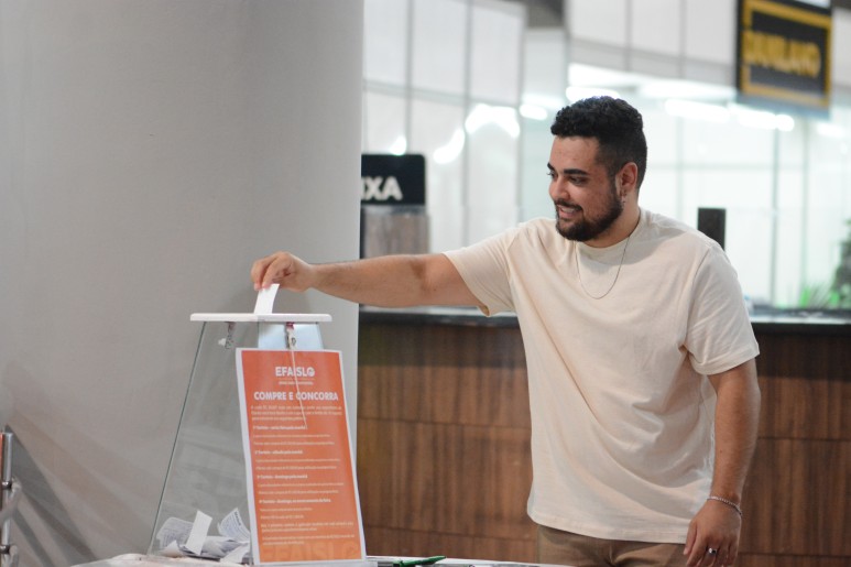 O primeiro sorteio, realizado na manhã desta sexta-feira (6), contemplou cupons referentes às compras feitas na quinta-feira (5). O segundo reúne cupons de compras realizadas na quinta e na sexta-feira. Já o terceiro sorteio considera as compras efetuadas entre quinta-feira e sábado. O quarto e último sorteio ocorre no encerramento da Efaislo, no domingo (8), reunindo todos os cupons depositados durante os quatro dias de evento. Nesse caso, o prêmio é um PIX no valor de R$ 1.000,00.